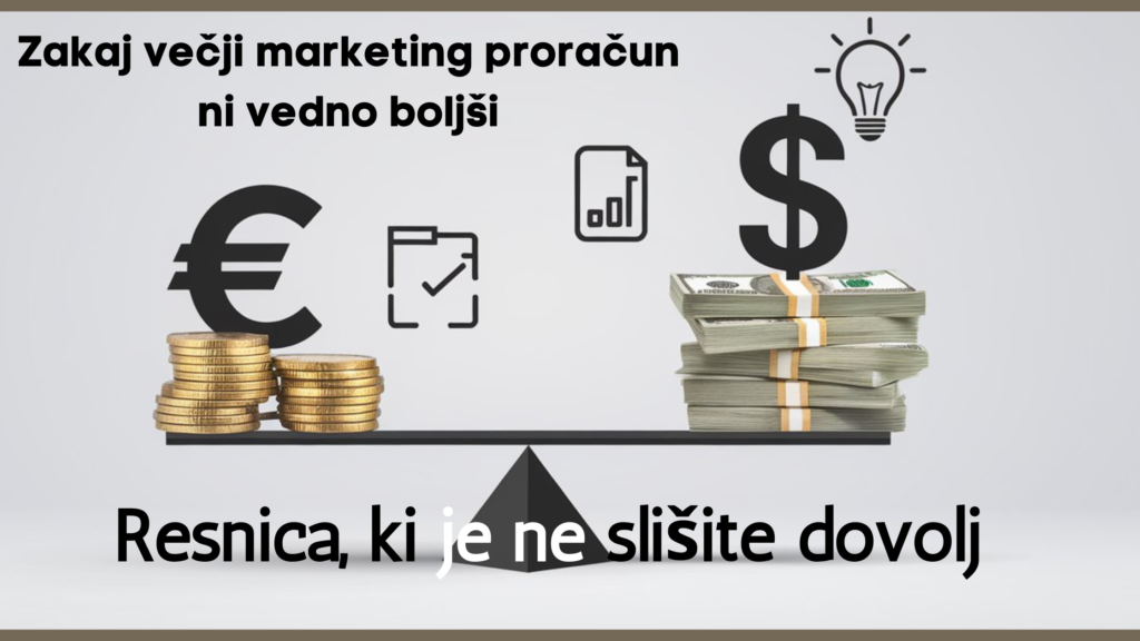 Pogosto slišim od podjetnikov: “Če bi imel večji proračun, bi moj marketing zares deloval!” A resnica je, da problem ni v višini marketing proračuna, temveč v tem, kako ga upravljate. Tukaj je nekaj ključnih lekcij, ki jih mora poznati vsak mali podjetnik ali start-up, preden se odloči za povečanje marketinških izdatkov.
